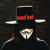 Description: The title character from the film "V for Vendetta" against a wall; the words "mod hat" appear in red on his hat