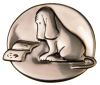 Description: 1" diameter sterling silver pin, depicting a James Thurber illustration of a dog reading a book