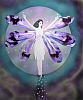 Description: pixie with purple wings aloft before a full moon