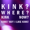 Description: White text of increasingly smaller size on a purple background: "Kink? Where? Kink now? Kink! Yay! I like kink!"