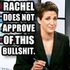 Description: Rachel Maddow looks skeptically at the camera. Text: "Rachel Does Not Approve Of This Bullshit."