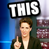 Description: Rachel Maddow points upward. The single word THIS floats above her head.